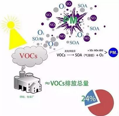 在所有的废气中,VOCs(Volatileorganiccompounds)即挥发性有机化合物,是一类常见的大气污染物,产生于油漆生产、化纤行业、金属涂装、化学涂料、制鞋制革、胶合板制造、轮胎制造等行业。有害的挥发性有机化合物主要包括丙酮、甲苯、苯酚、二甲基苯胺、甲醛、正己烷、乙酸乙酯、乙醇等。